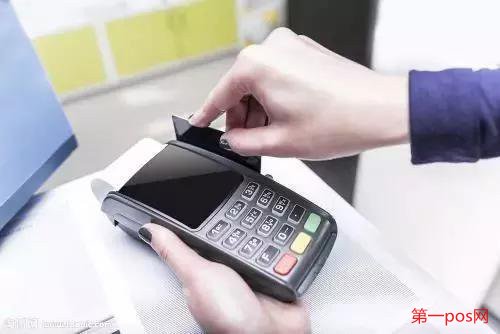 第六步:讓客戶在pos機上刷卡(一般磁條卡在右側感應區刷,芯片卡放置在pos機上端感應區就行)。